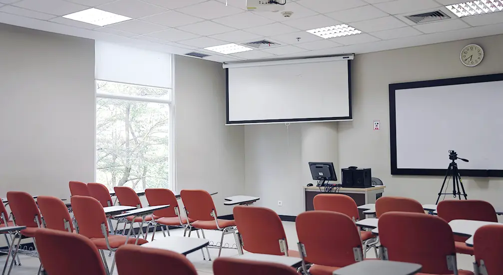 Lecture Theater is located in the D building. This room is used for combined classes or study sessions with invited or public lectures, seminars, socialization, and other student activities. Lecture Theater has a capacity of approximately 500 people.